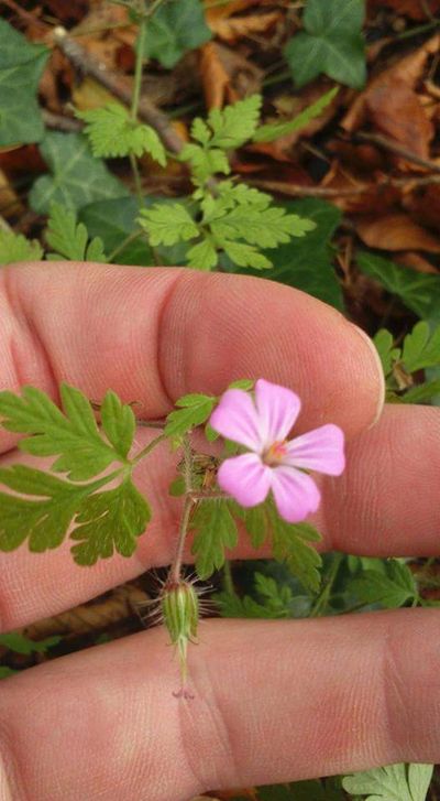 Commonly known as Herb-Robert, also known as Red Robin, Death come quickly, Storksbill, Dove's Foot, Crow's Foot, or (in North America) Robert Geranium, is a common species of cranesbill native to Europe and parts of Asia, North America, and North Africa.