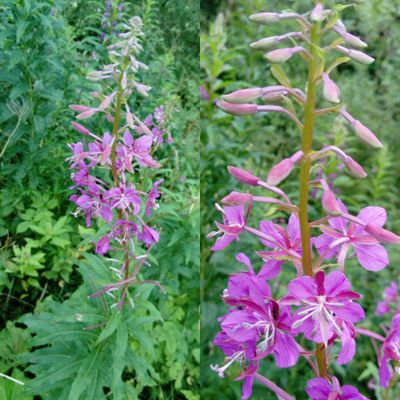 Chamaenerion angustifolium is commonly known in North America as Fireweed, in some parts of Canada as great Willowherb, and in Briton as Rosebay Willowherb. It's a perennial herbaceous plant in the Willowherb family, Onagraceae.